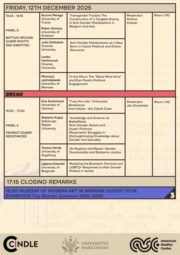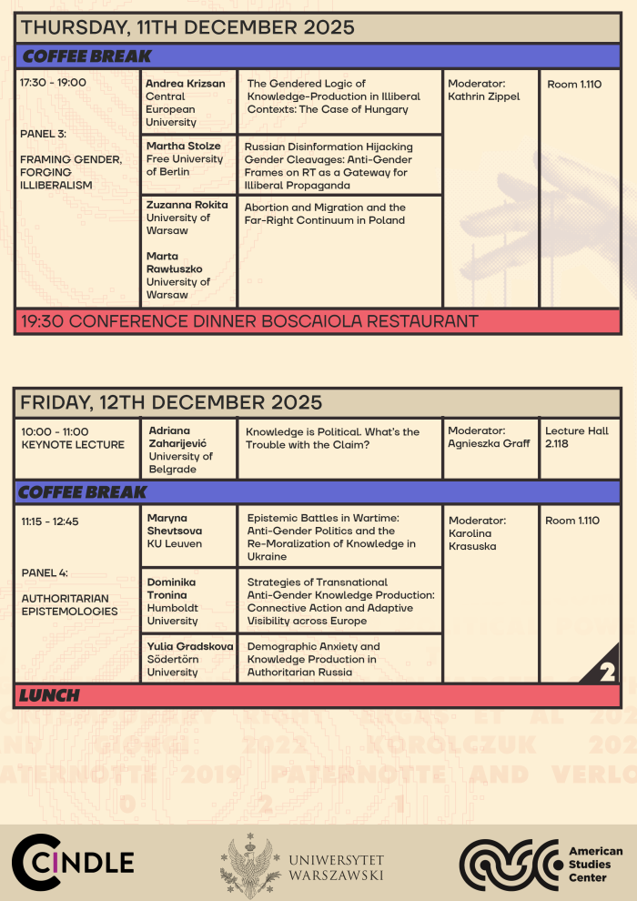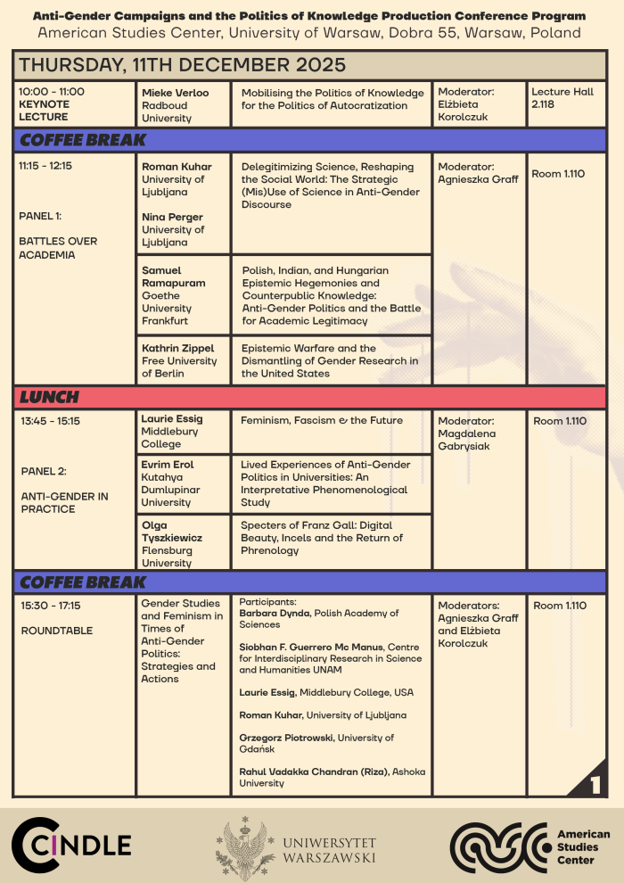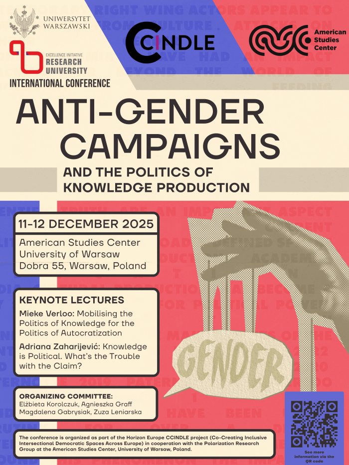 The American Studies Center at the University of Warsaw invites you to the international conference Anti-gender campaigns and the politics of knowledge production, to be held on 11–12 December 2025 in Warsaw, Poland.